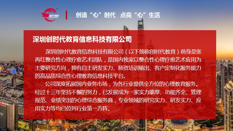 国内整合性心理疗愈艺术创始人张再红、心理学博士高秋凤两大权威带领核心团队成员潜心研发,以创新的授课方式,创新的教育理念,开启学员潜意识大门,消除根源性问题,挖掘潜能,植入梦想信念——