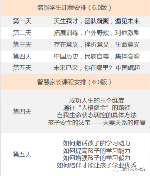 备注:高端营为2天家长课堂,其它营为1天家长工作坊